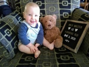 Aside from being super cute, Milo also has eight teeth, loves food, and can (and does!) crawl all over our house. He’s still working on standing up on things, but his crawling is very impressive. He just figured it out one day, took a few hours to perfect it, and took off. And now we never know where he’ll be.