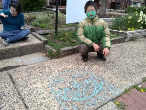 I guess it’s not that obvious from the picture, but he drew what looked like a fanged blob. And then he drew another. And another. All over their sidewalk. And he was very protective of them, too. Any time anyone stepped on one of his creations, he would carefully retrace the smudged lines. It was very sweet.