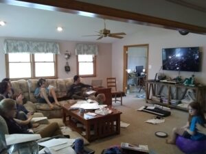 You can’t really tell from the picture, which just looks like a snapshot of our messy living room, but this was halfway through a “concert” as everyone played some folk song on various instruments. I don’t really play an instrument, so I was exempt, but you can still see me (the closest one to the camera, on the couch) trying to stop my ears from bleeding too much. Sorry, that was mean. They could have done with a bit of practice, that’s all. And I can’t judge anyway, because I don’t play an instrument.